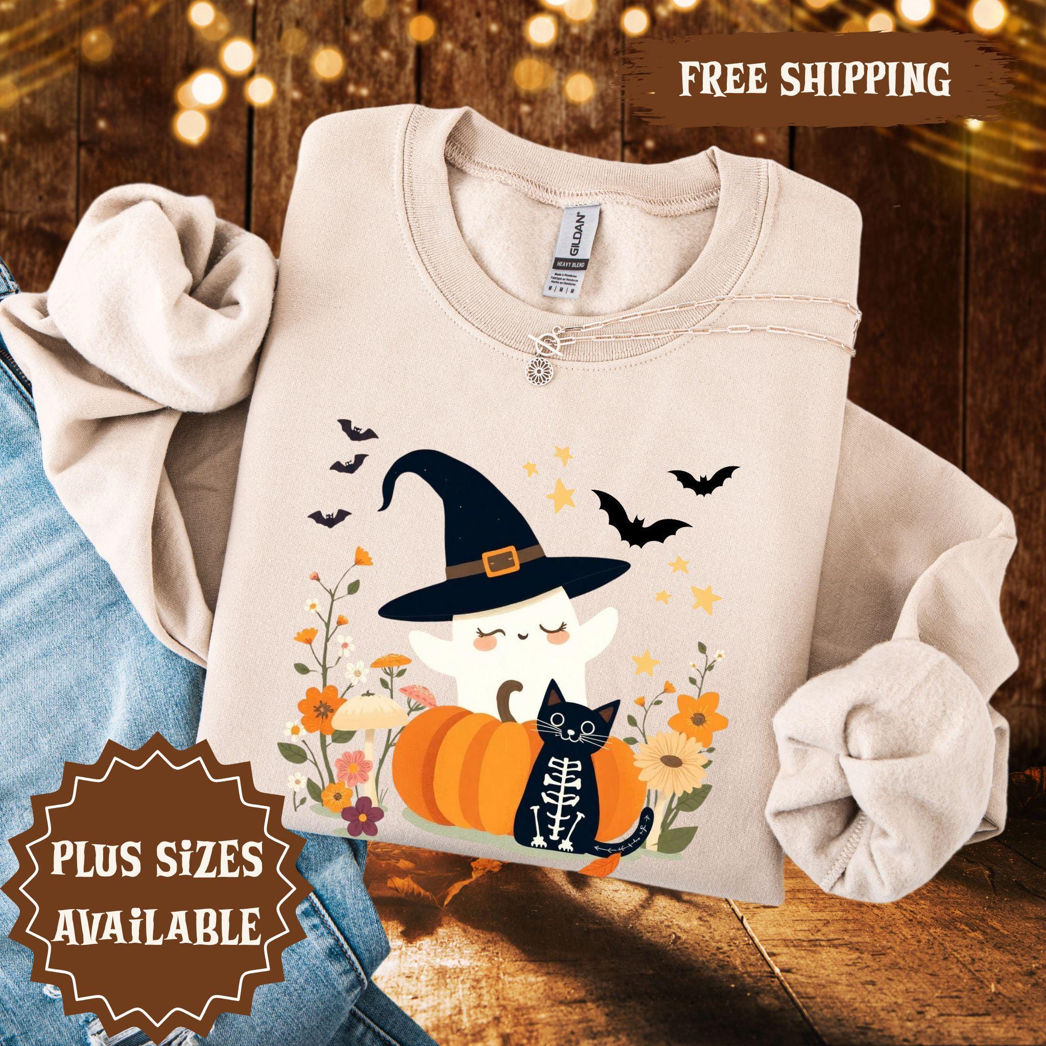 Whether you’re heading out for pumpkin picking, haunted hayrides, or just curling up at home with cider and your black cat, this sweatshirt is a must-have for every cozy witch and Halloween lover. 🌙✨