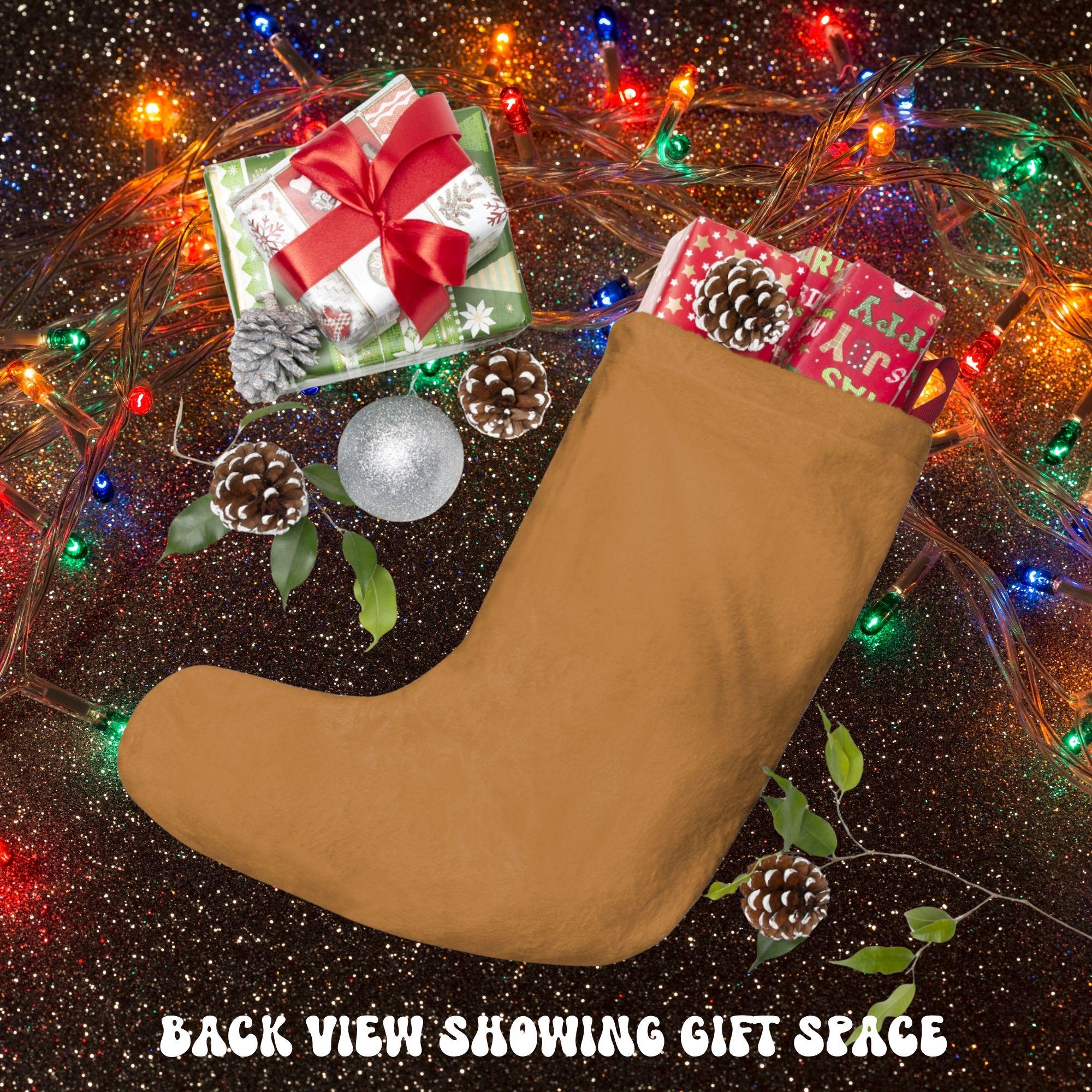 This is not a traditional stiff stocking — it’s crafted from a soft, plush material. When displayed empty, we recommend placing a piece of cardboard, tissue paper, or light filler inside to help it keep its shape.