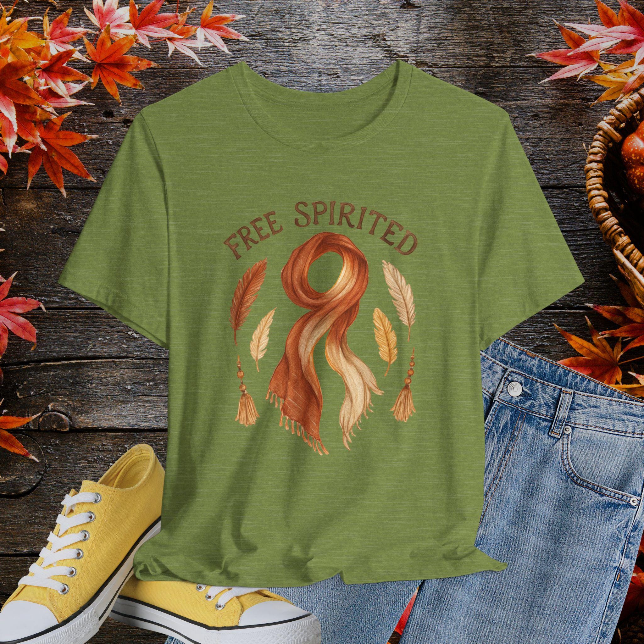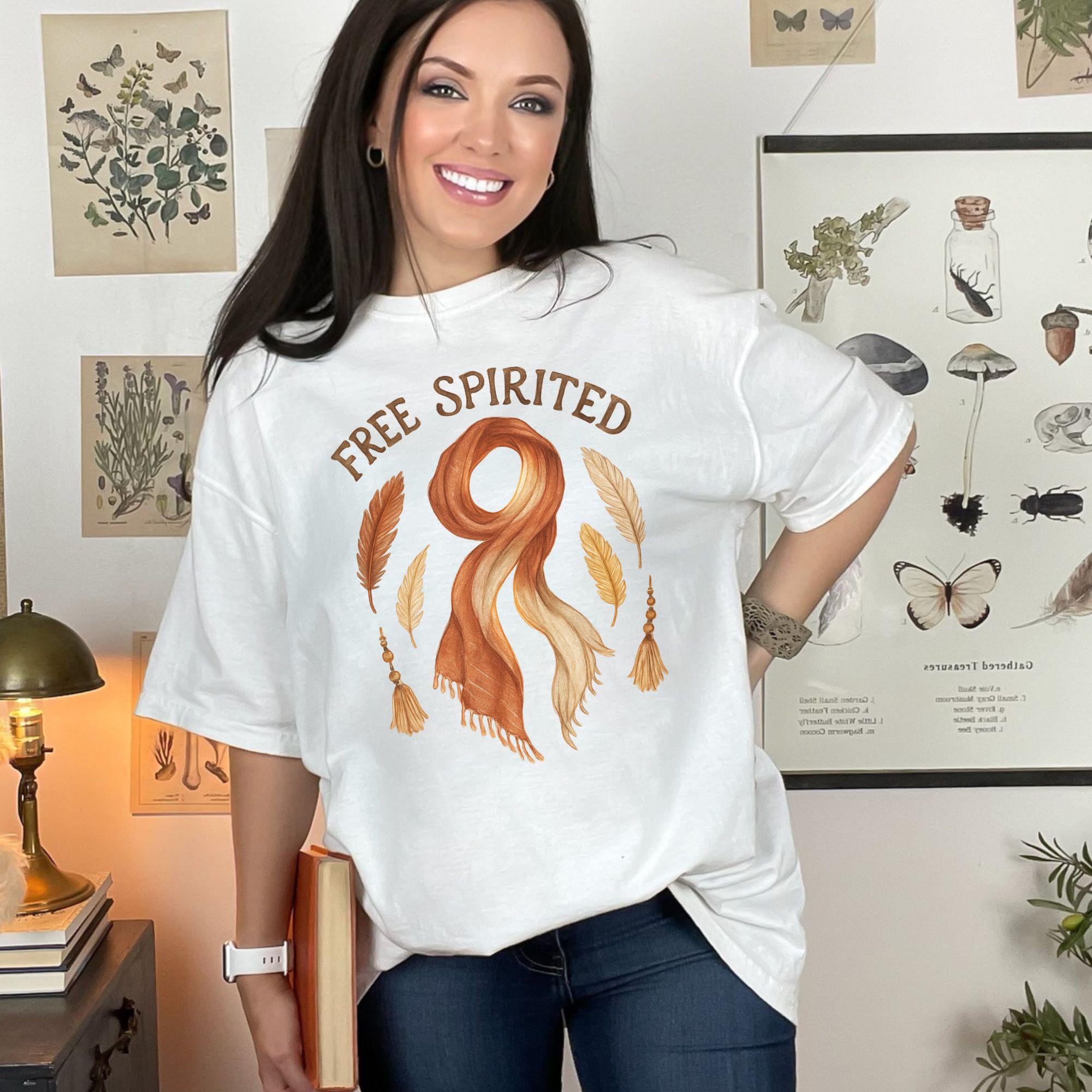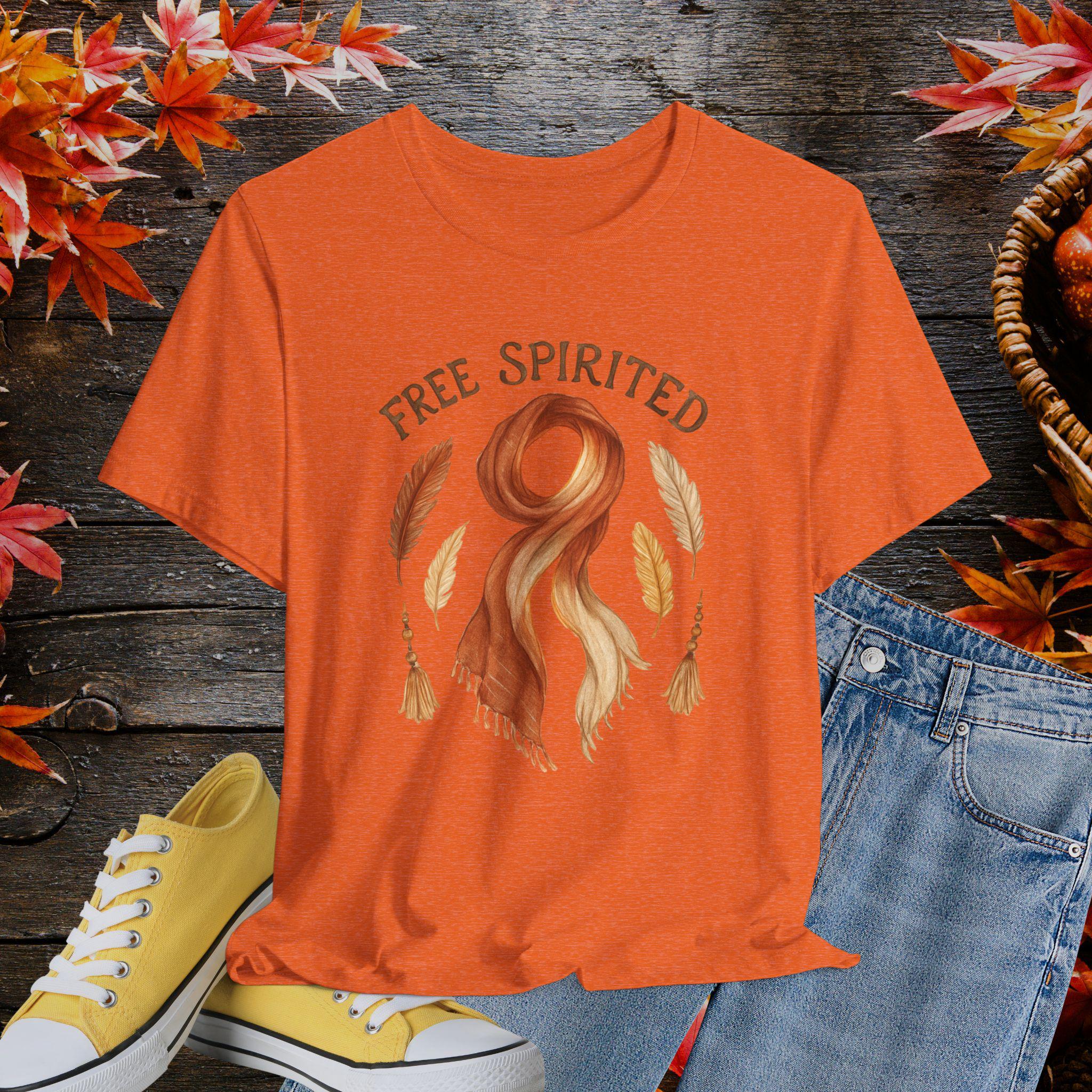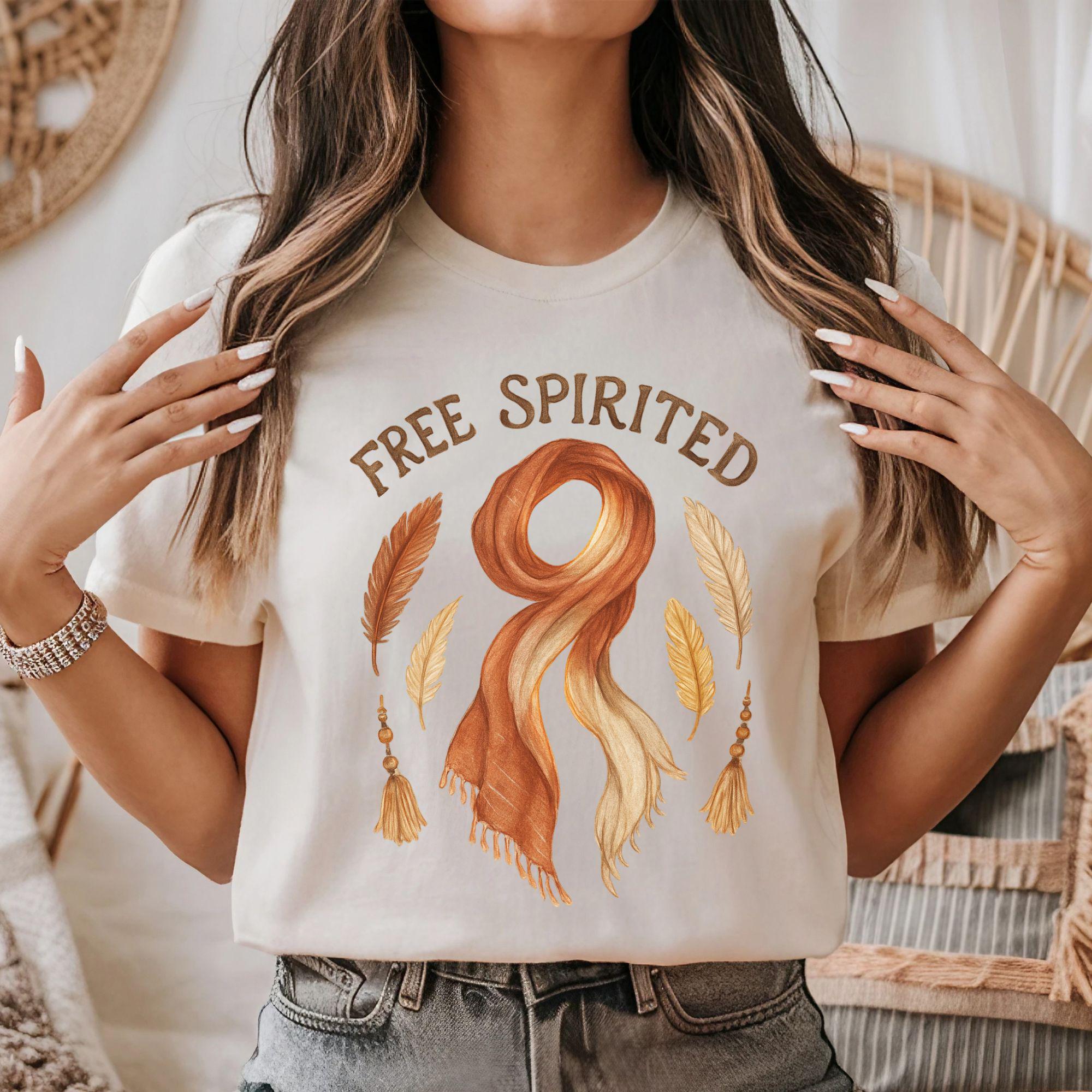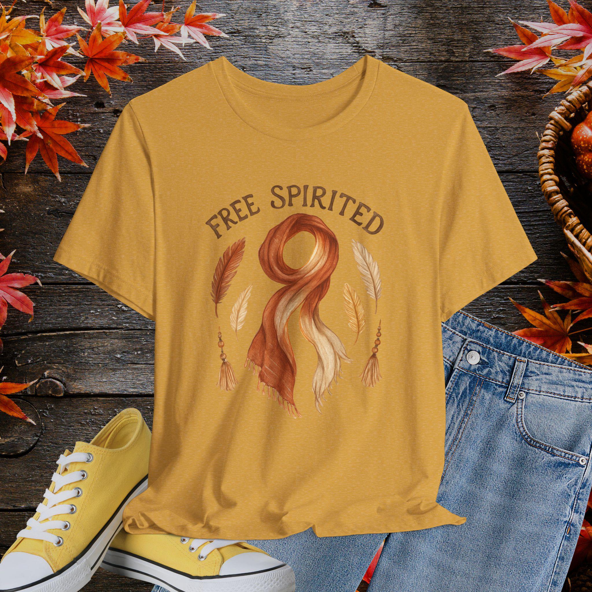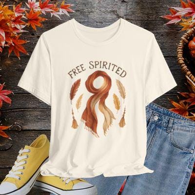 Bring cozy fall vibes and free-spirited energy into your wardrobe with this “Free Spirited” Bella Canvas 3001 Tee. 🍂 Featuring soft autumn hues, flowing scarf artwork, and feather details, this boho-inspired graphic tee is perfect for layering with cardigans, flannels, or denim jackets all season long.