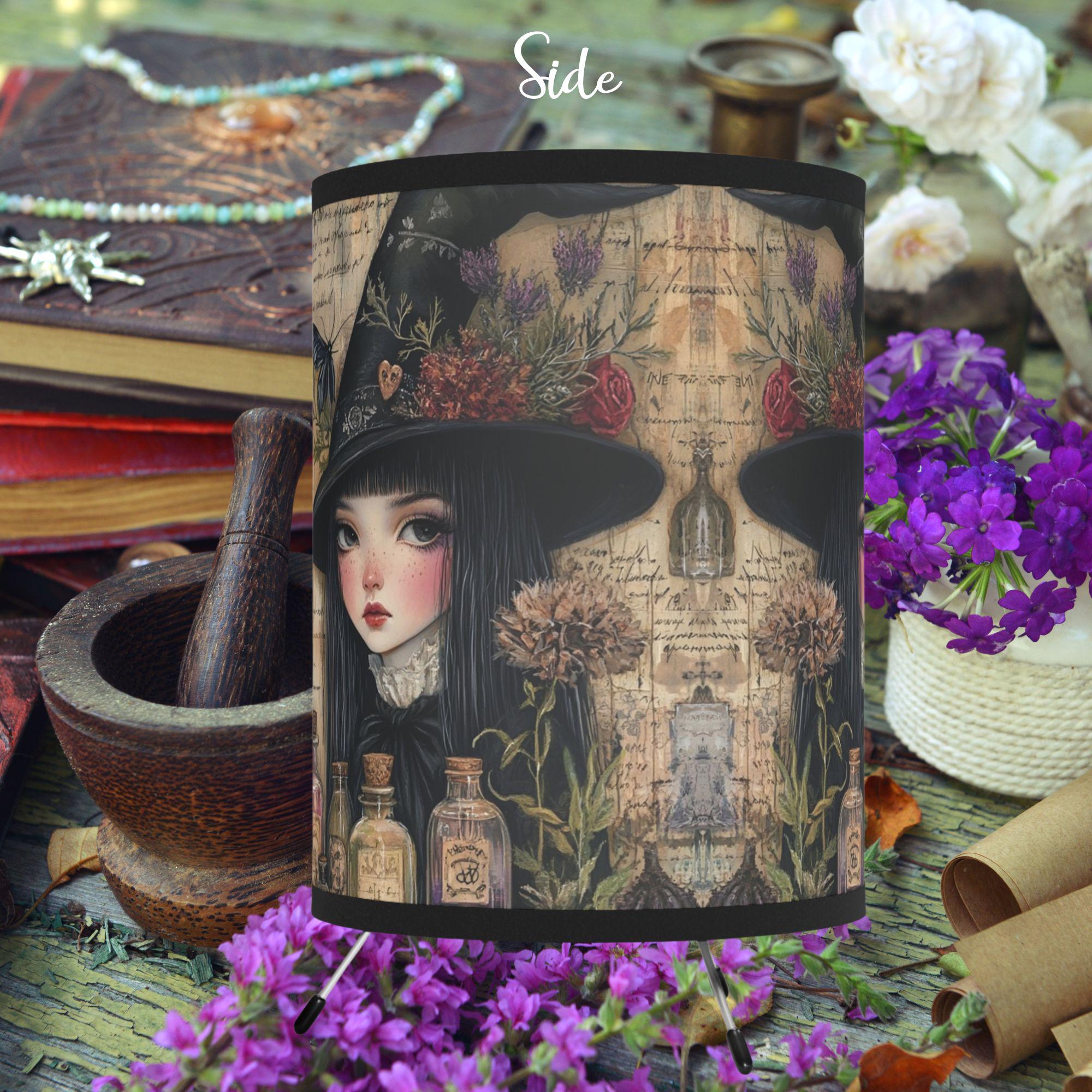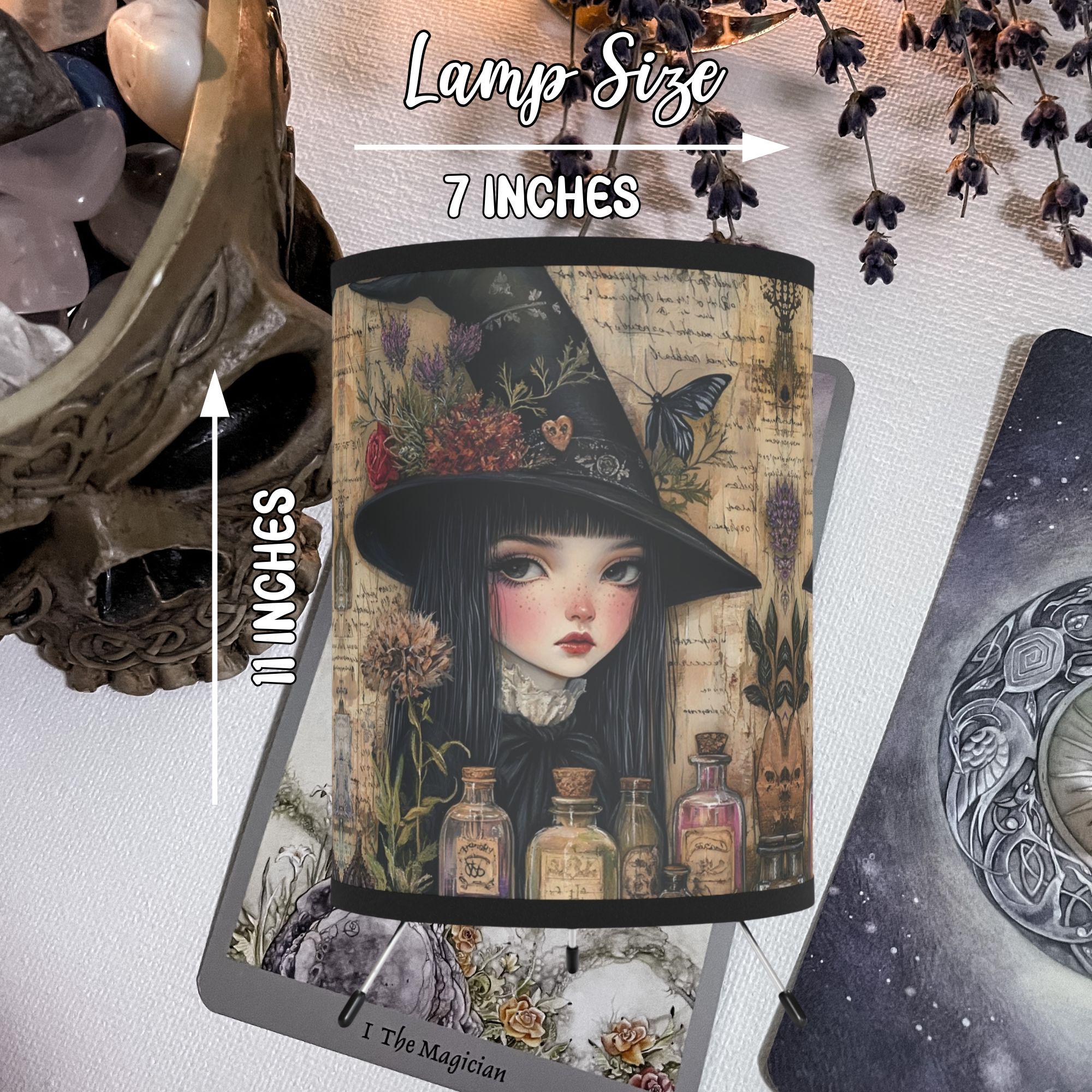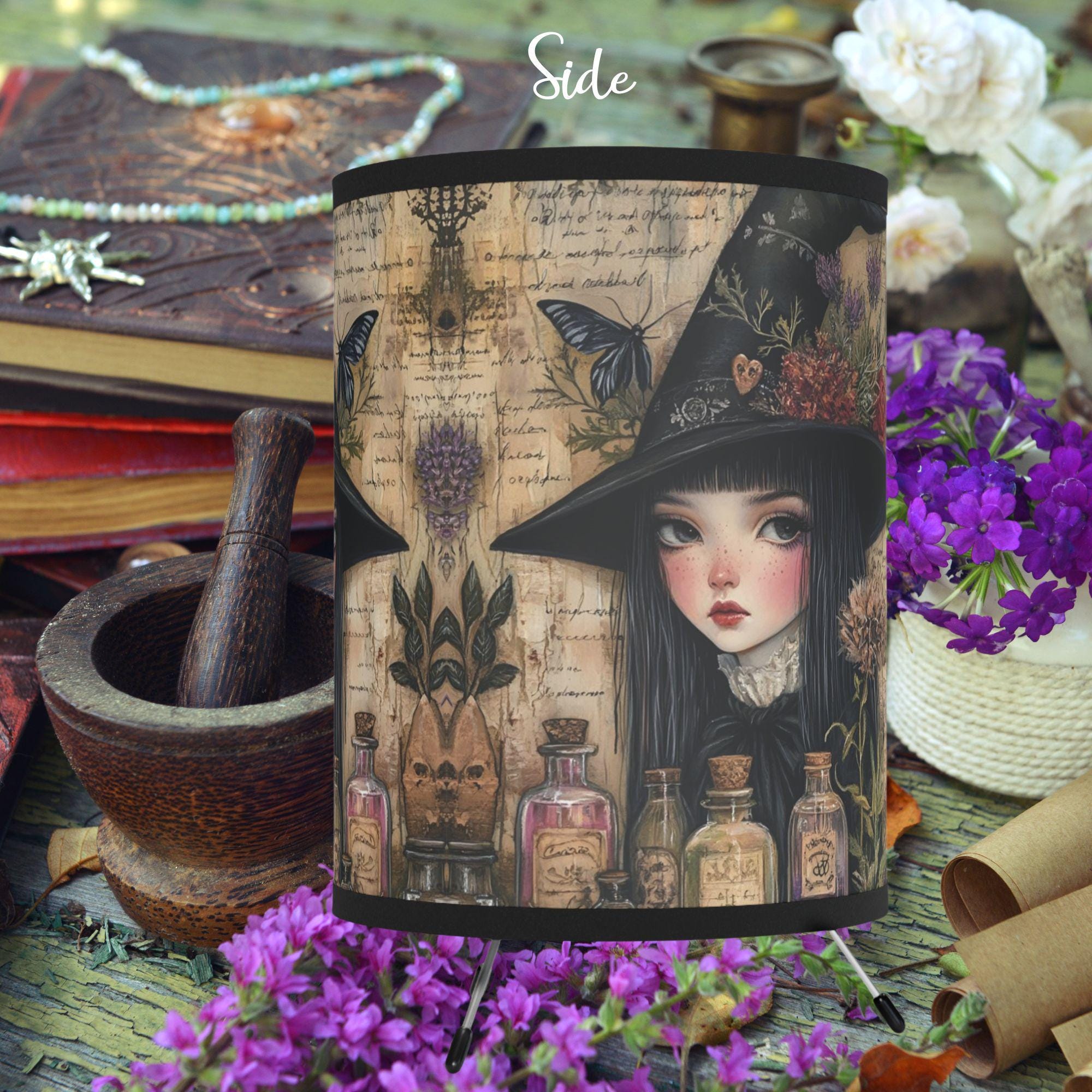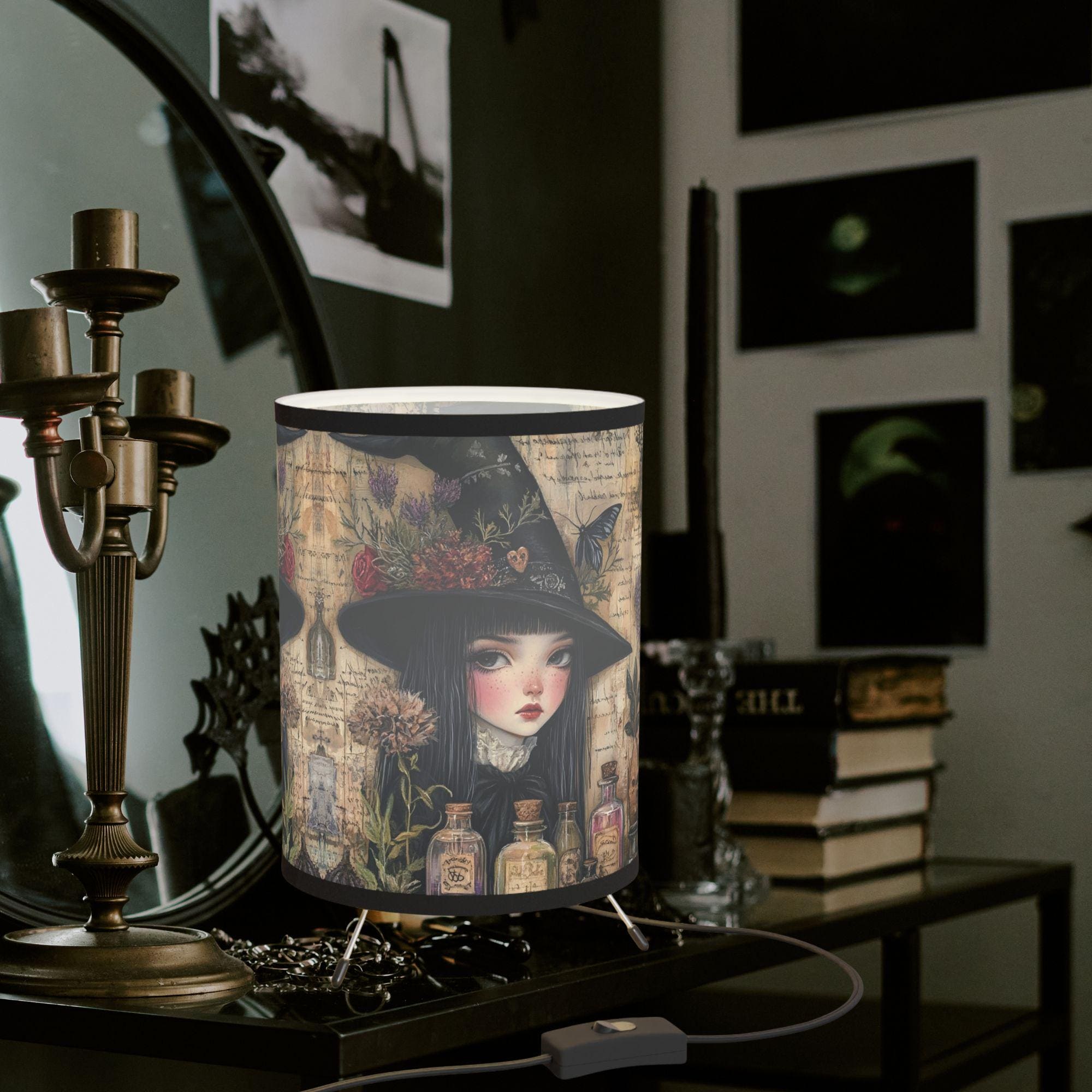 Add a touch of spellbinding charm to your home with this Enchanted Apothecary Witch Lamp. Featuring a stunning high-resolution print of a dark-eyed witch surrounded by vintage potion bottles, herbs, and flowers, this lamp brings an aura of mystery and magic to any space. Perfect for gothic decor lovers, witches at heart, or anyone who adores moody, whimsical aesthetics. 🌙