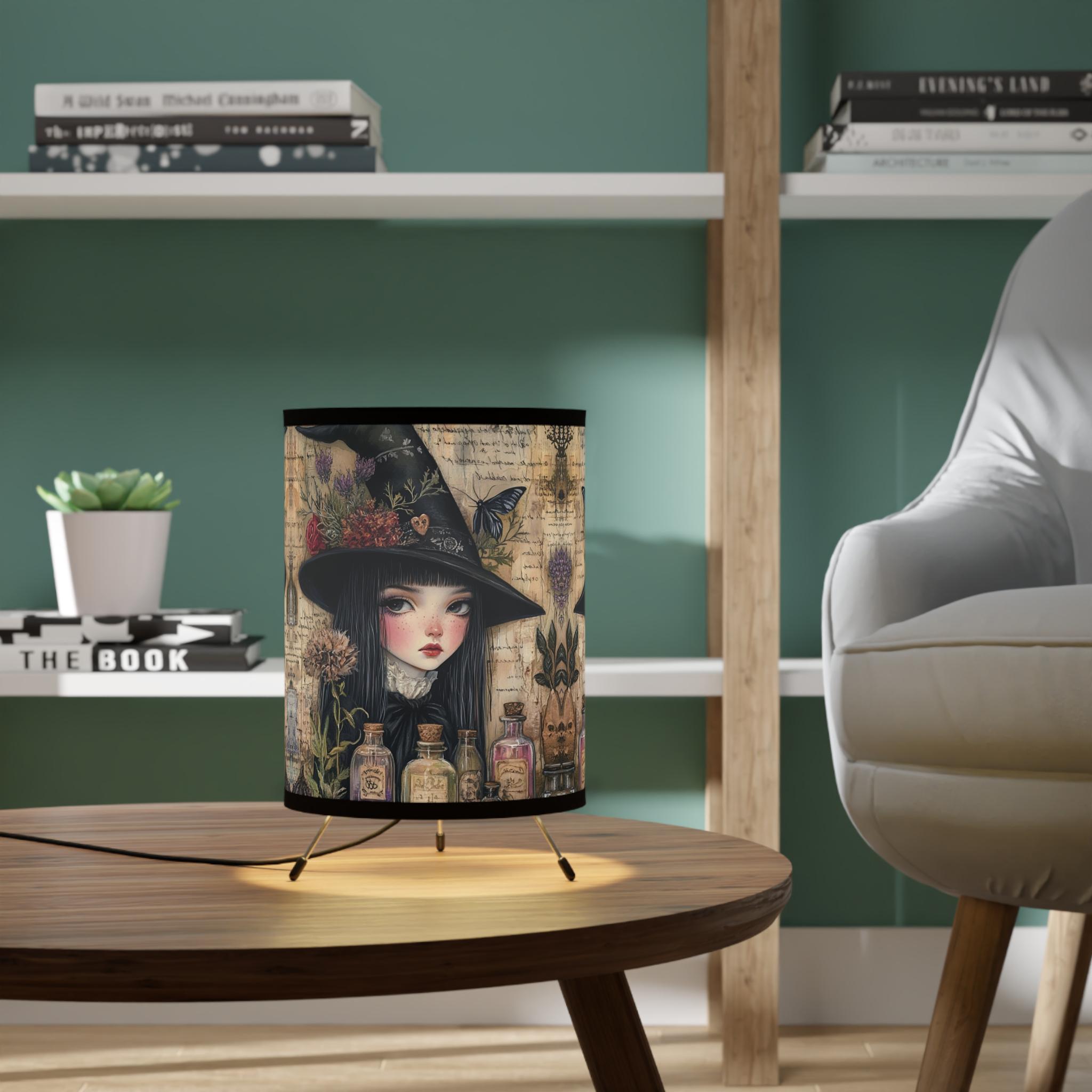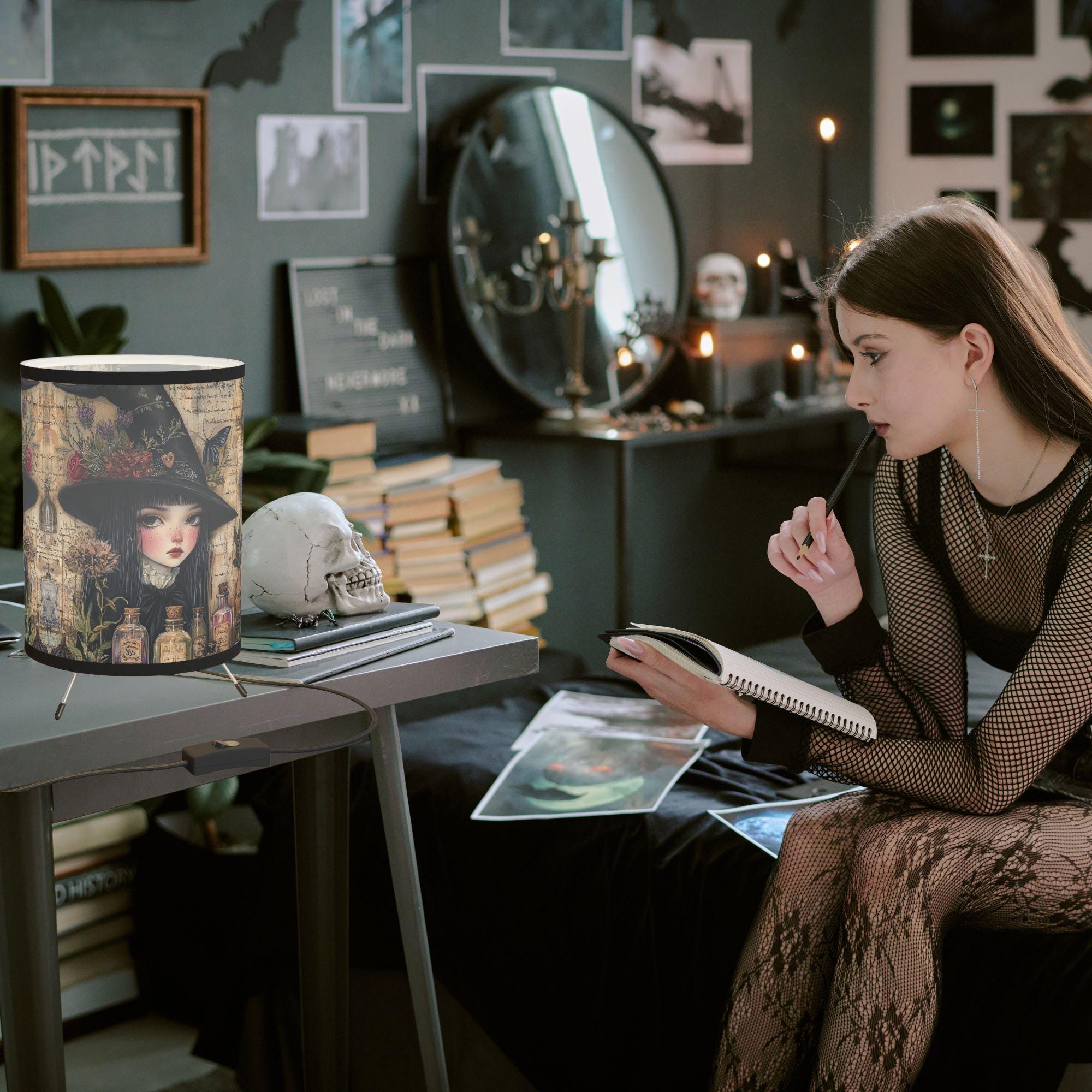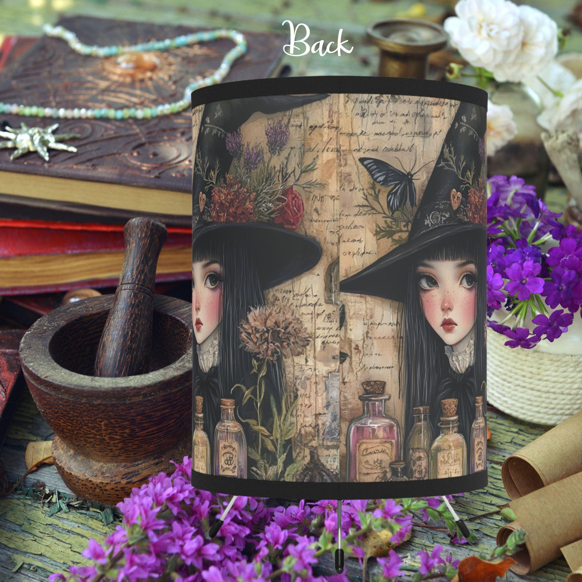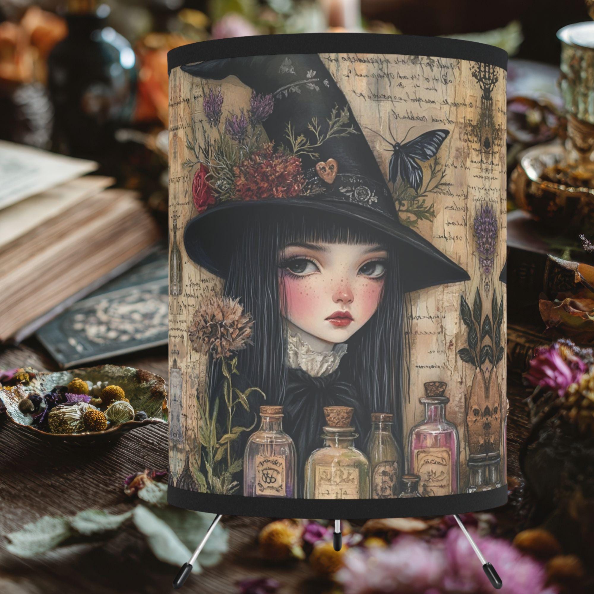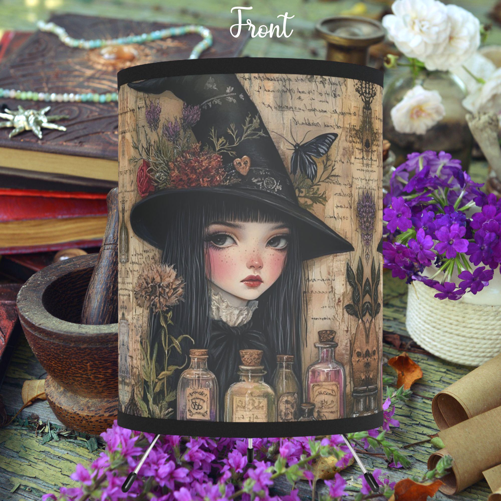 Add a touch of spellbinding charm to your home with this Enchanted Apothecary Witch Lamp. Featuring a stunning high-resolution print of a dark-eyed witch surrounded by vintage potion bottles, herbs, and flowers, this lamp brings an aura of mystery and magic to any space. Perfect for gothic decor lovers, witches at heart, or anyone who adores moody, whimsical aesthetics. 🌙