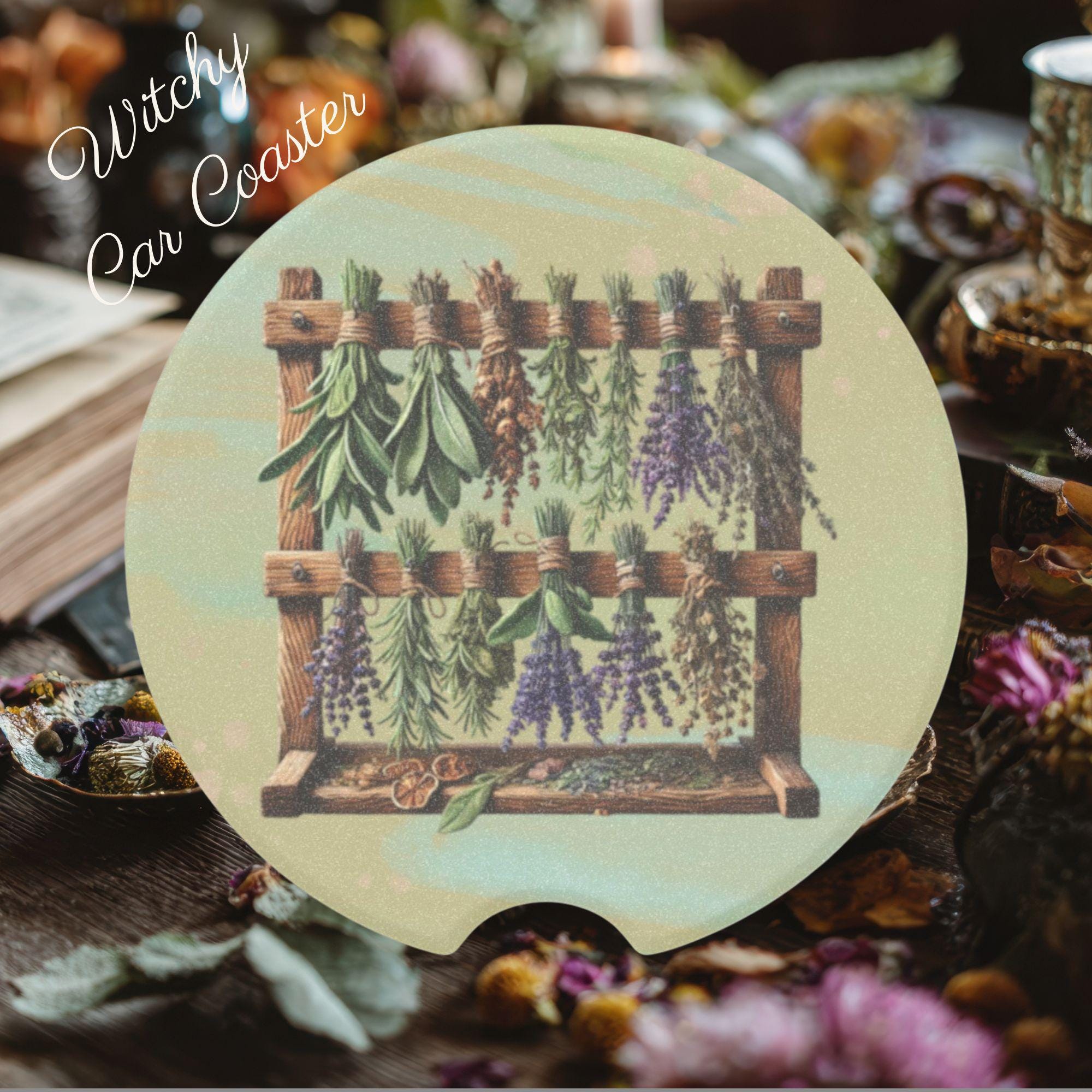 Bring a touch of herbal magic to your daily drives with this Witchy Herb Hanging Car Coaster! 🌙 Perfect for those who love the cozy cottage aesthetic, herbal remedies, or witchy apothecary decor, this coaster keeps your cup holders clean while adding a hint of nature’s charm.