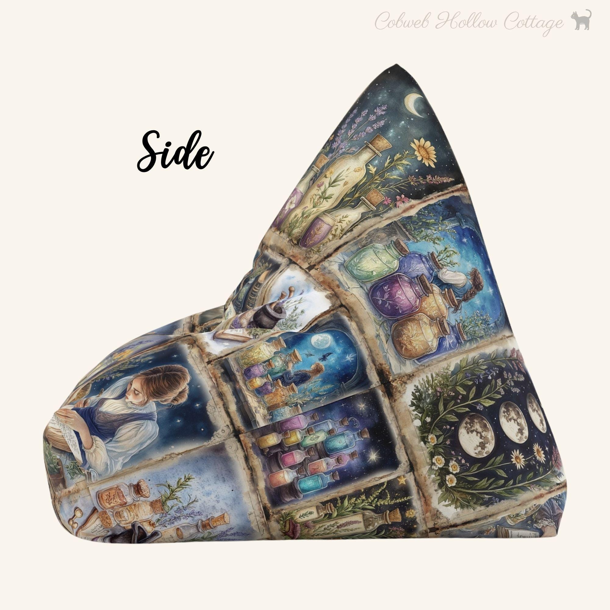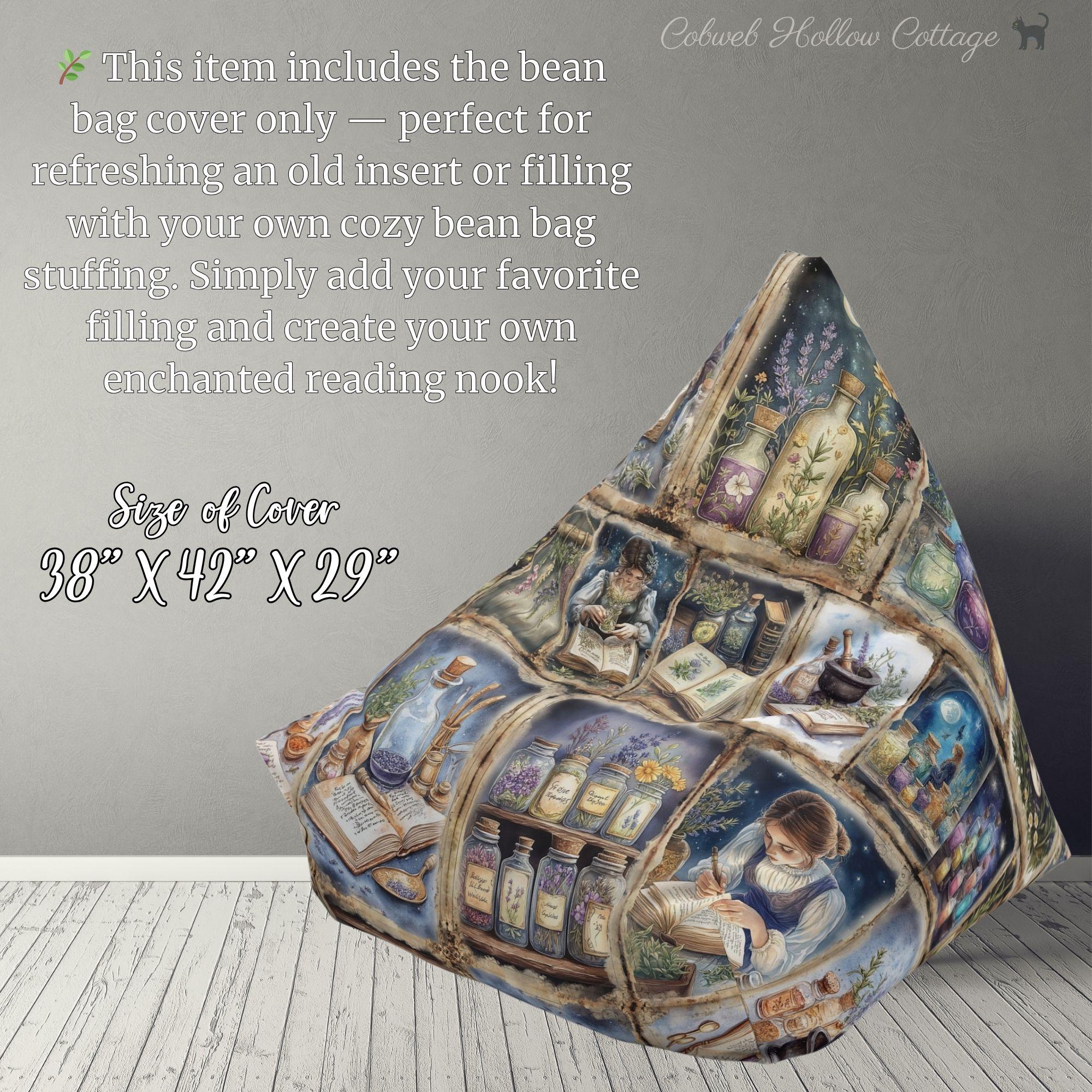 Transform your cozy corner into a spellbinding retreat with this enchanting bean bag cover! Featuring a magical apothecary scene filled with potion bottles, spellbooks, herbs, and celestial details, it’s the purrfect touch of witchy cottage charm for your home. 🌿📚💫